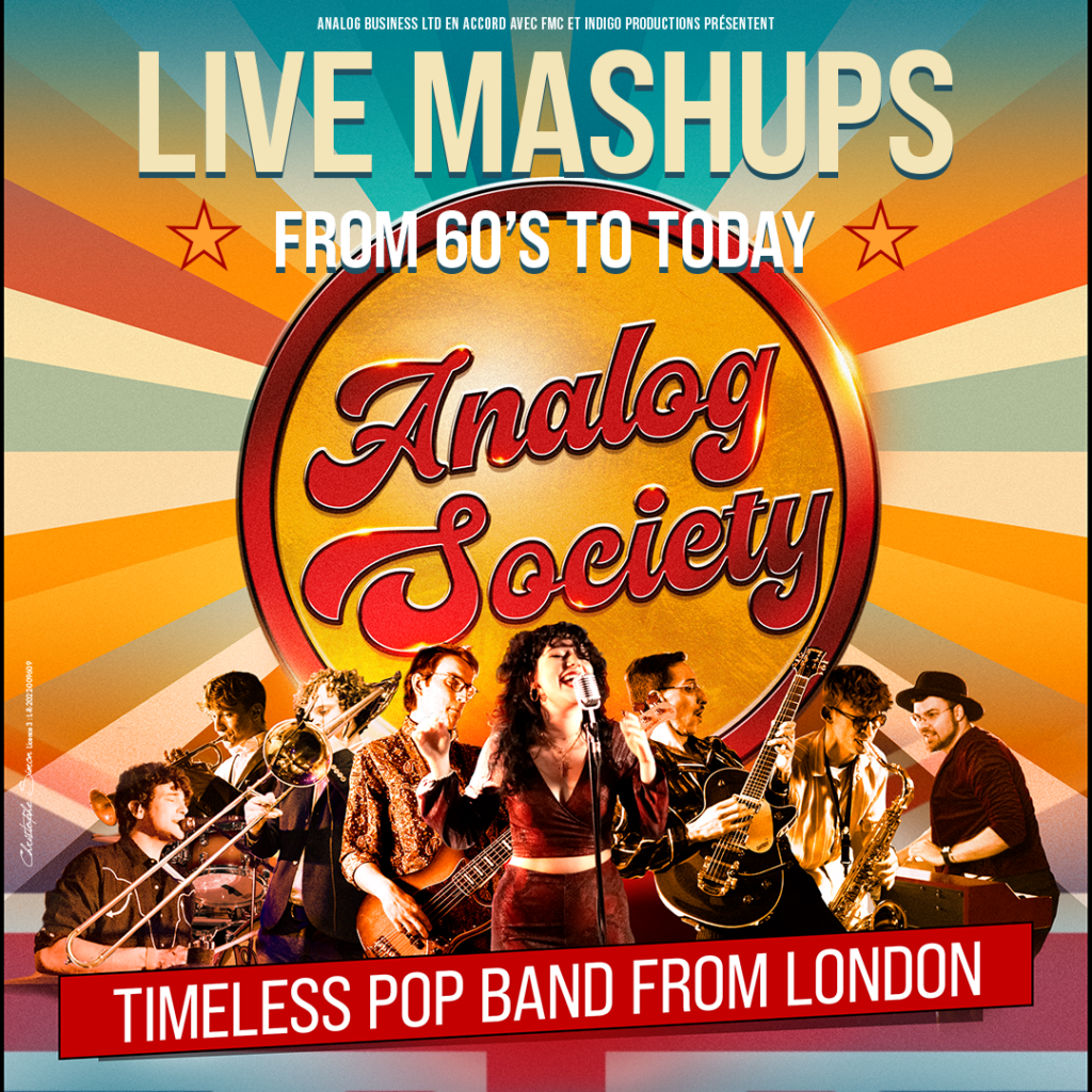 Né dans les clubs underground de Londres, les membres d’Analog Society mélangent les époques et les styles avec une liberté explosive. Ils réinventent l’art du mashup en live, en revisitant, sur scène et en temps réel, les grands titres de la musique populaire des années 60 à aujourd’hui : Daft punk, Nina Simone, David Guetta, Queen, Coldplay, Dua Lipa….